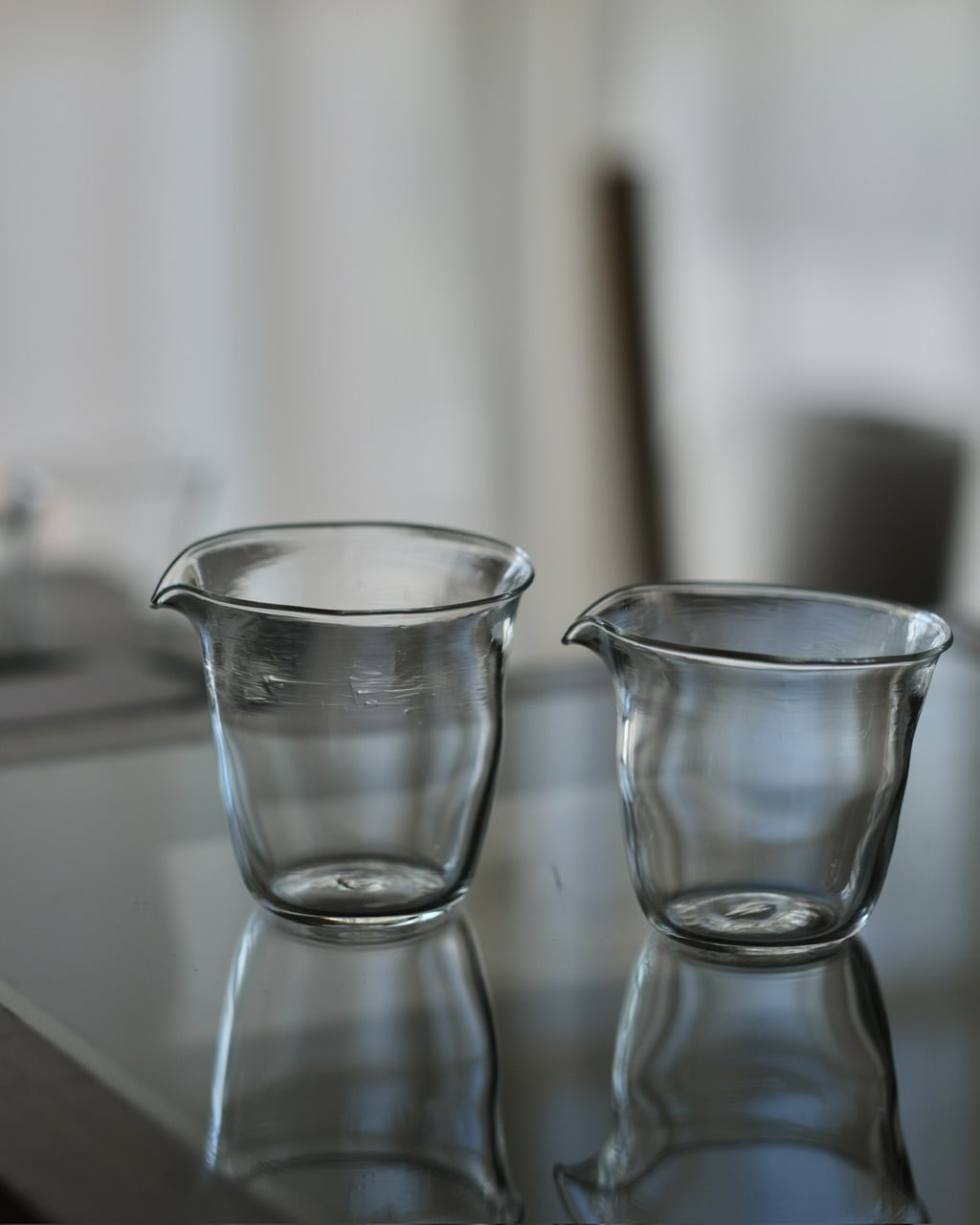 耐熱ガラスを用いて生み出される津田亮さんの茶器は、驚くほど手に馴染み、自然にお茶の時間へと引き込んでくれます。