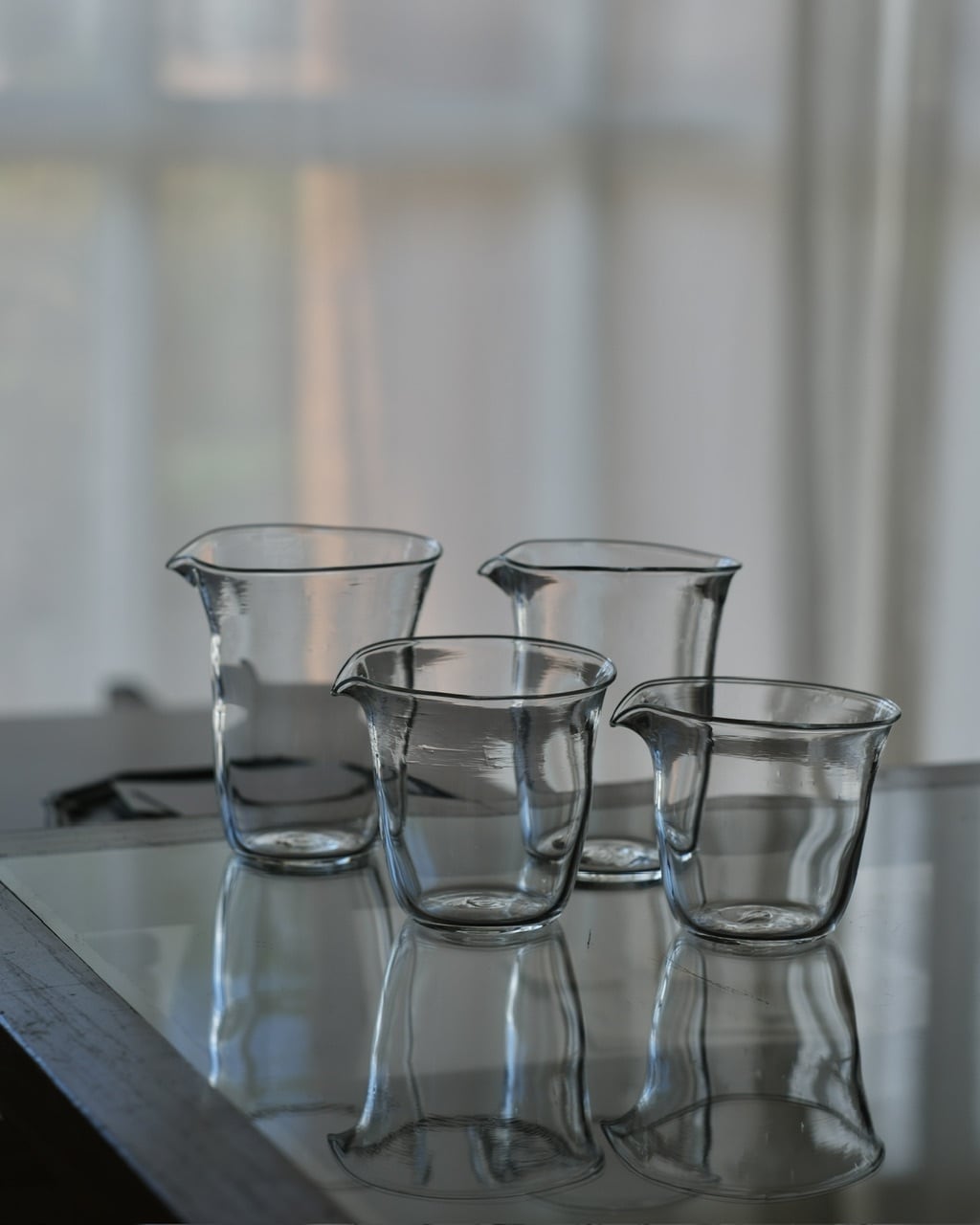 耐熱ガラスを用いて生み出される津田亮さんの茶器は、驚くほど手に馴染み、自然にお茶の時間へと引き込んでくれます。