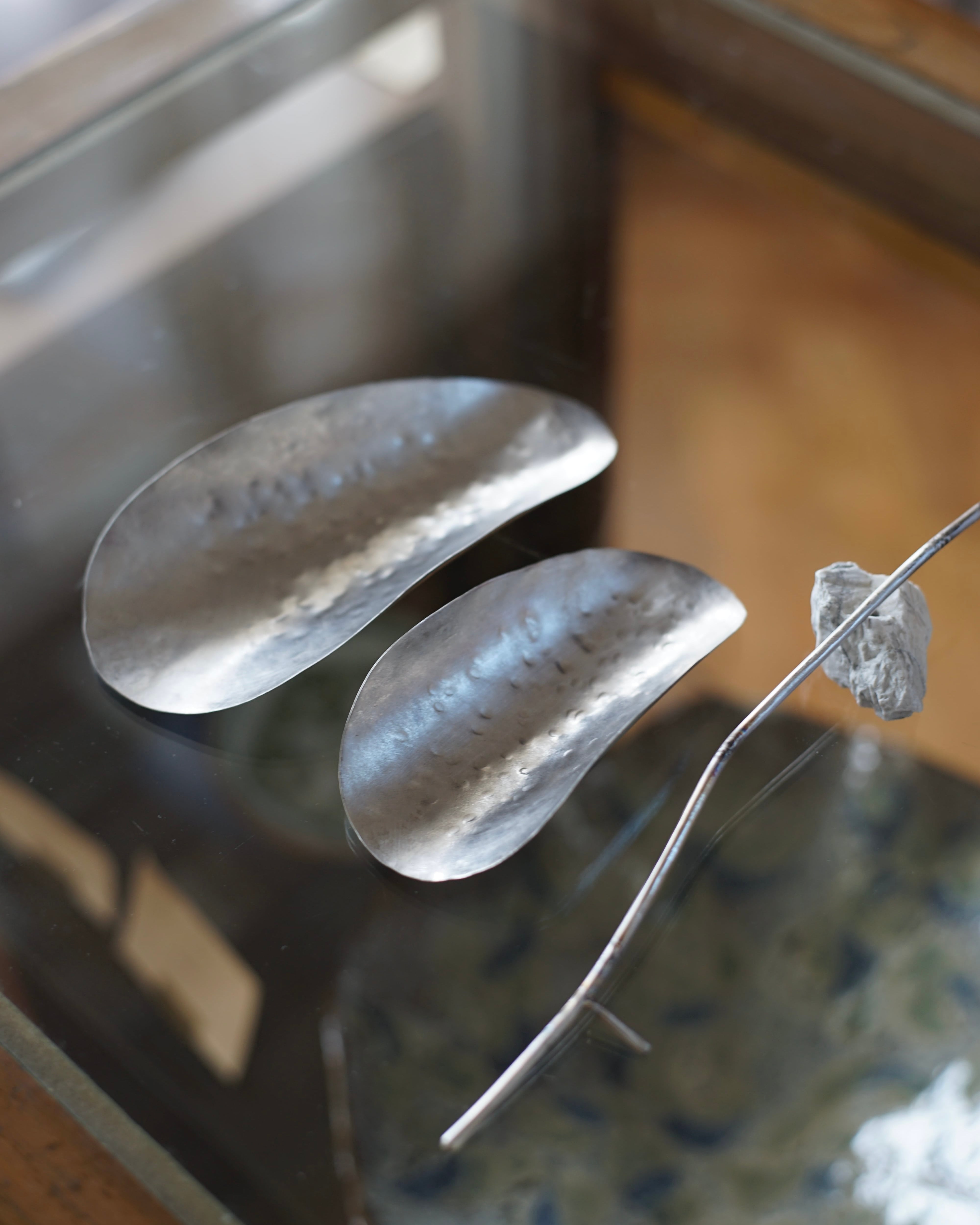 加工が難しいステンレスをラッコのようにハンマーで叩いて造形した茶荷