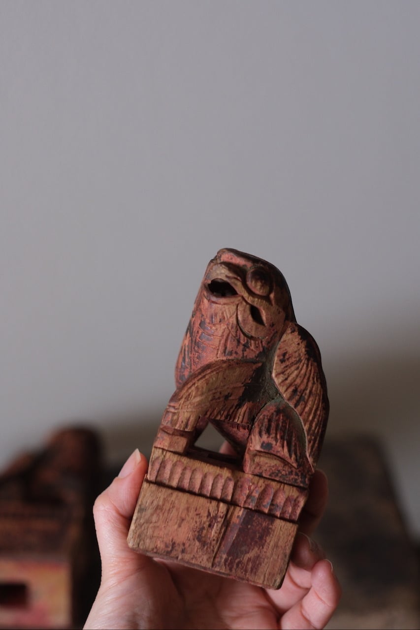 中国の古い建築装飾の一部としてかつて家を見守っていた木彫りのオブジェ。