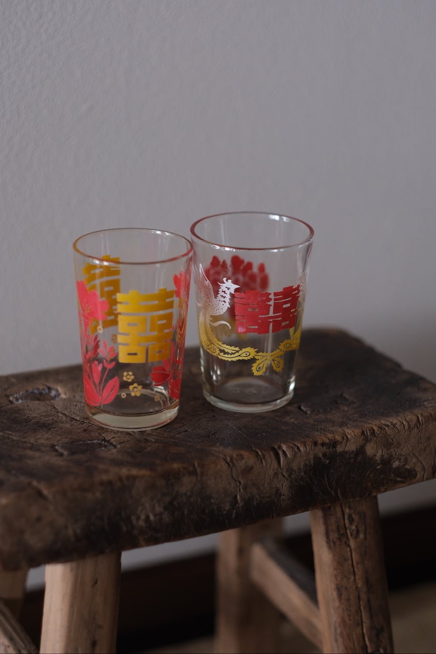 1970〜90年代頃、中国の宴席や家庭で白酒など飲むときに使われていた小さめの祝杯用のグラスです。