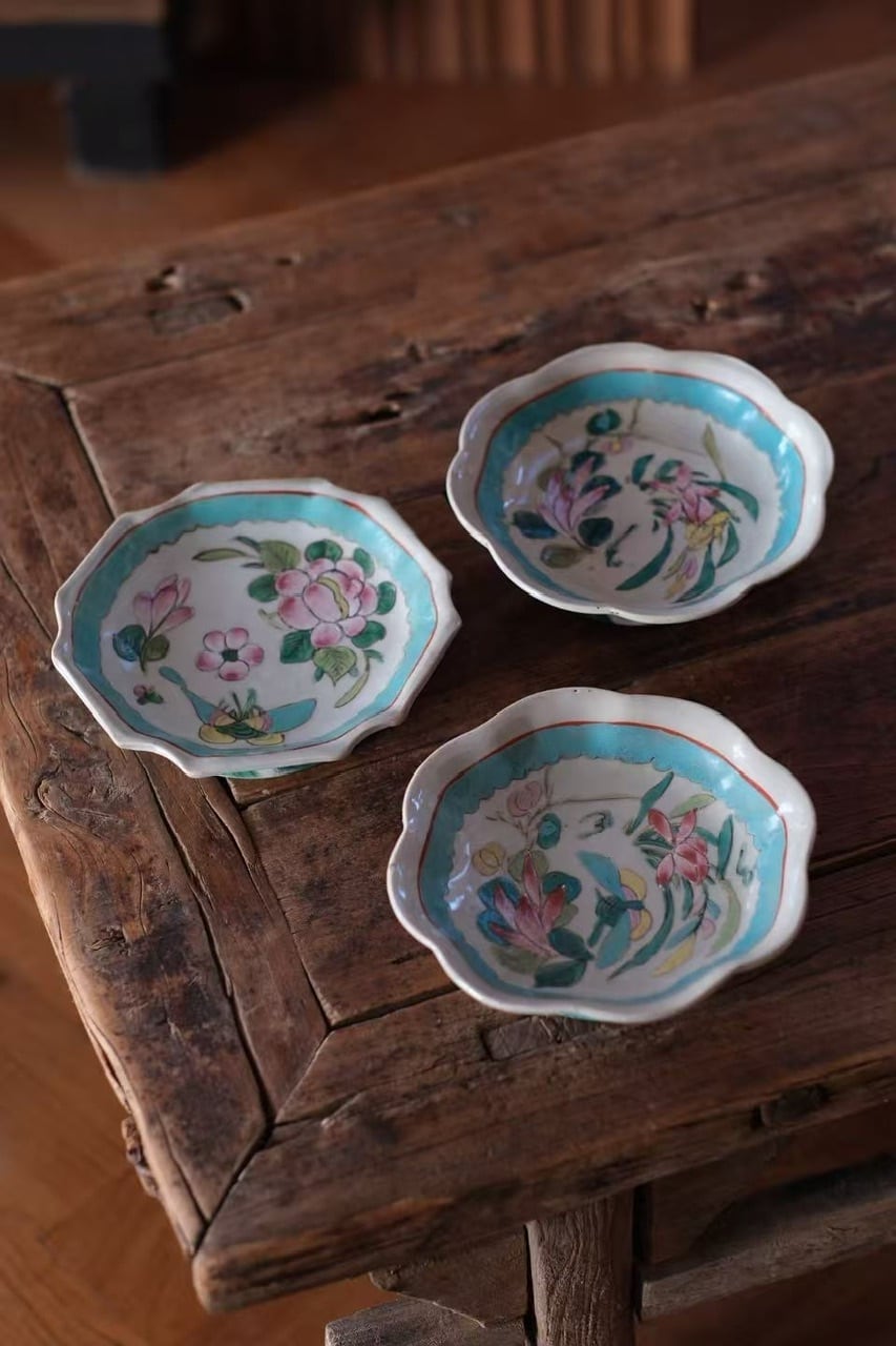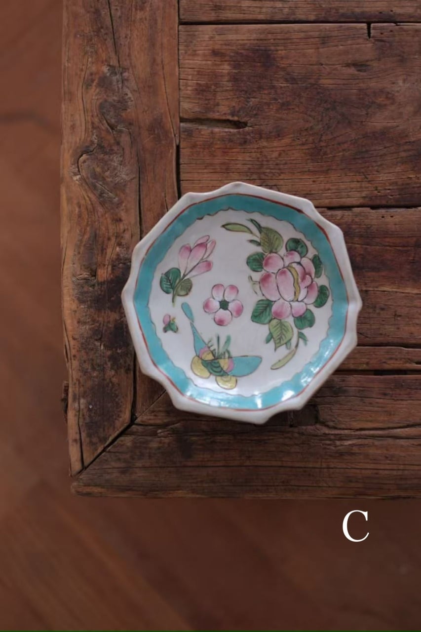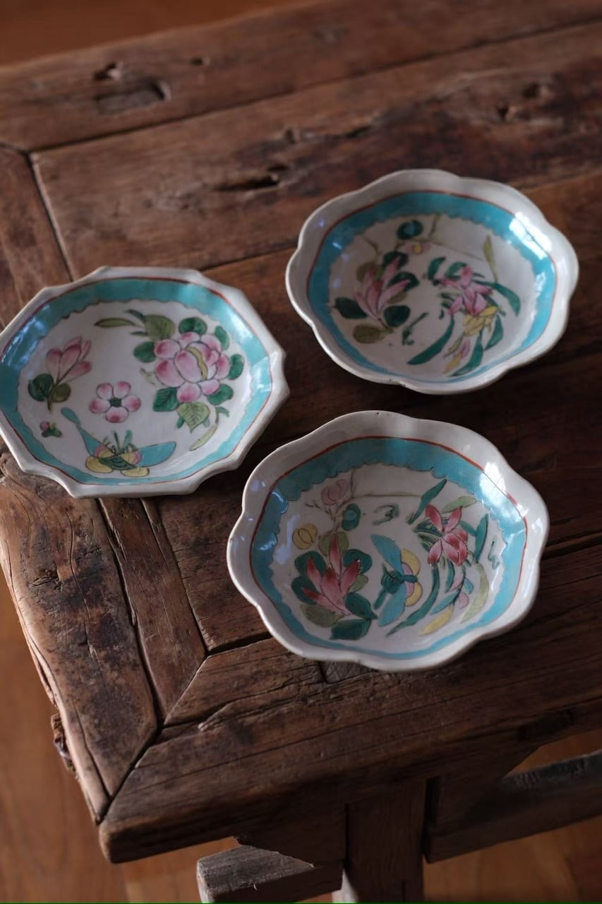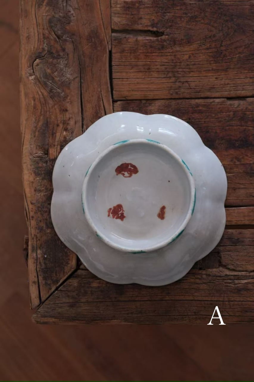 こちらは清代末期に作られた年代物です。経年によるわずかな擦れ、貫入や色の沈着、小さなヒビや欠け、当時の製造工程で生じた窯傷(小さな黒点や釉薬のムラなど)が見られる場合がございます。古いものならではの味わい、景色としてお楽しみいただけますと幸いです。