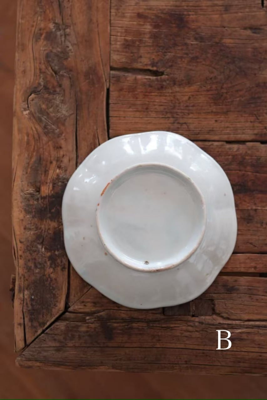経年によるわずかな擦れ、貫入や色の沈着、小さなヒビや欠け、当時の製造工程で生じた窯傷(小さな黒点や釉薬のムラなど)が見られる場合がございます。古いものならではの味わい、景色としてお楽しみいただけますと幸いです。