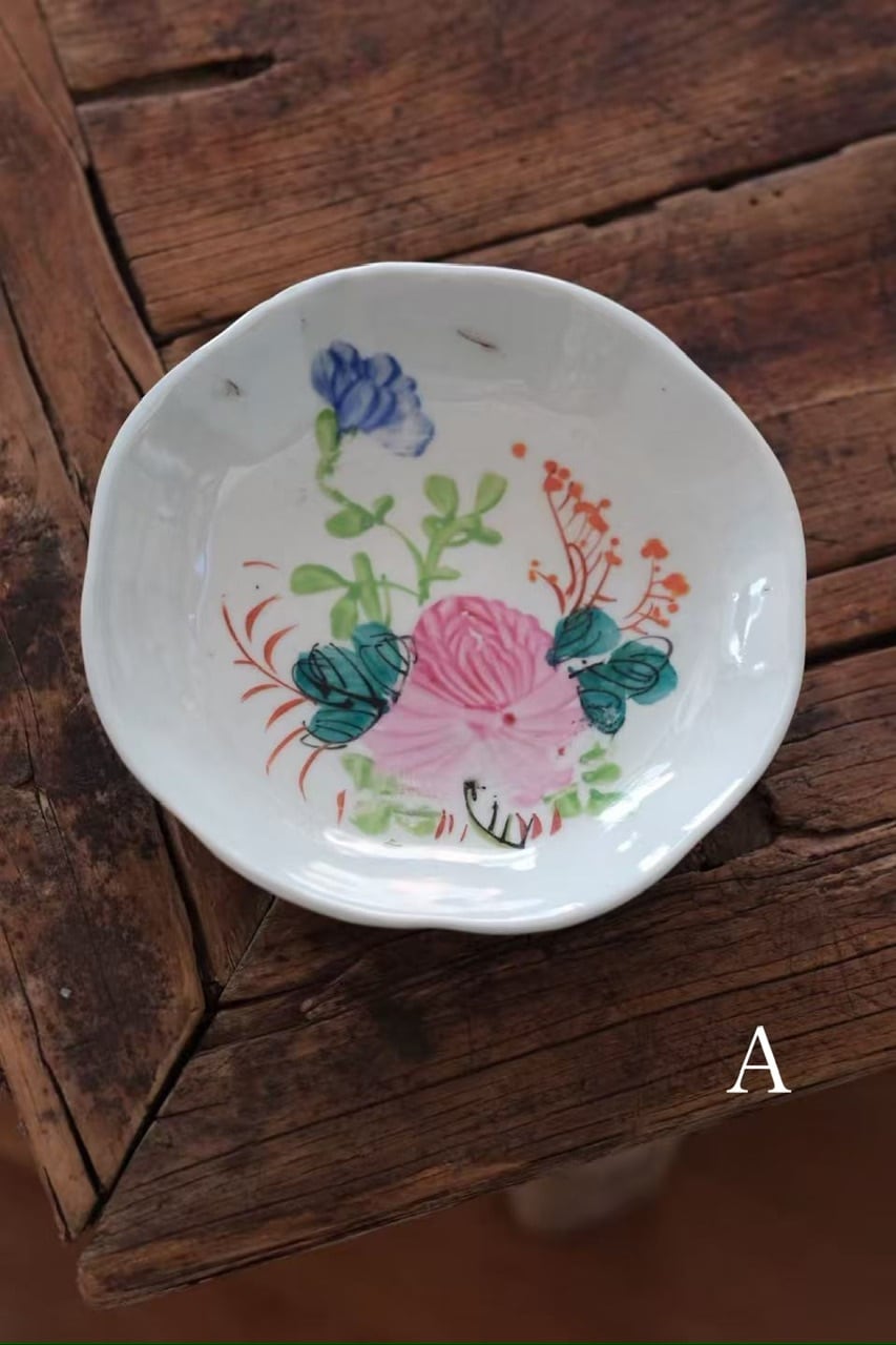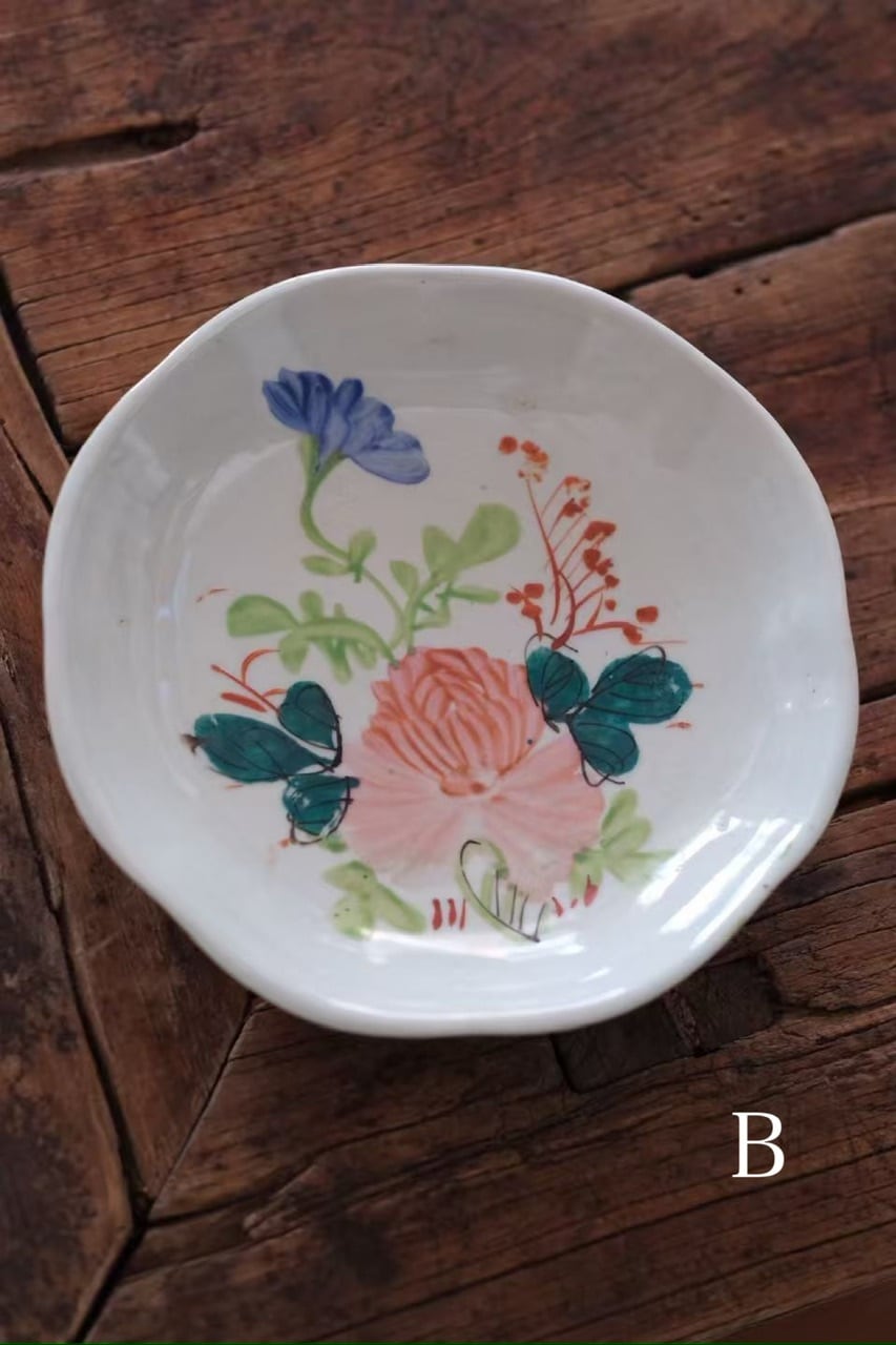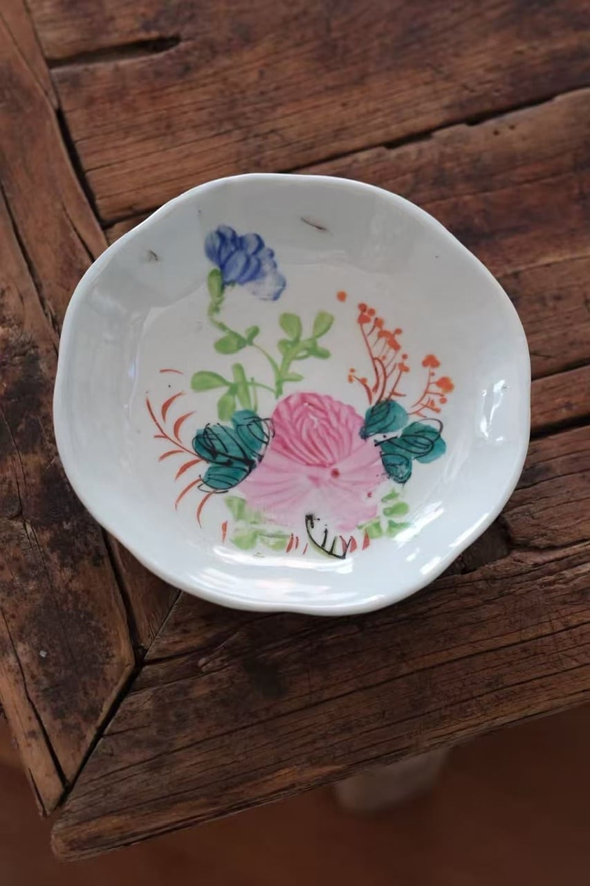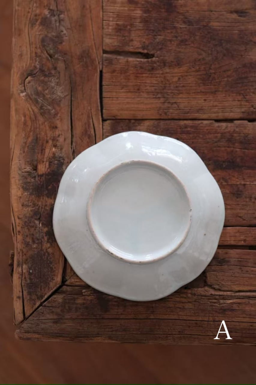 縁はほんのりと波打つような柔らかなフォルムになっており、お皿全体がひとつの花のようにも見える愛らしい仕上がりです。