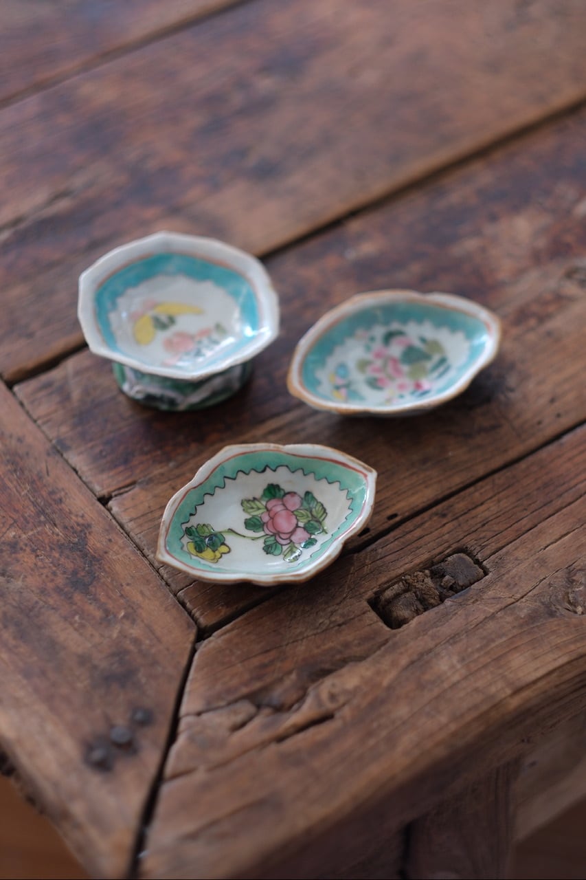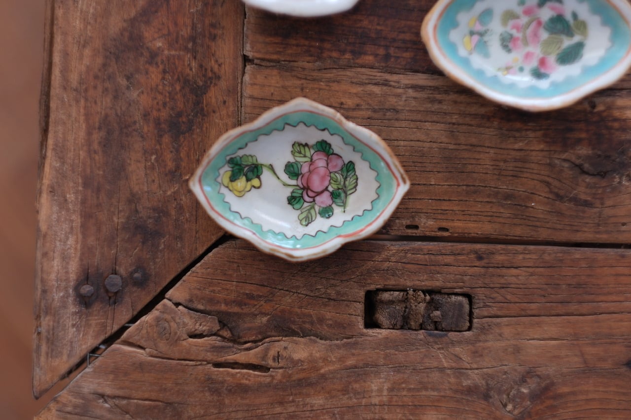 こちらは清代末期に作られた年代物です。経年によるわずかな擦れ、貫入や色の沈着、小さなヒビや欠け、当時の製造工程で生じた窯傷(小さな黒点や釉薬のムラなど)が見られる場合がございます。古いものならではの味わい、景色としてお楽しみいただけますと幸いです。