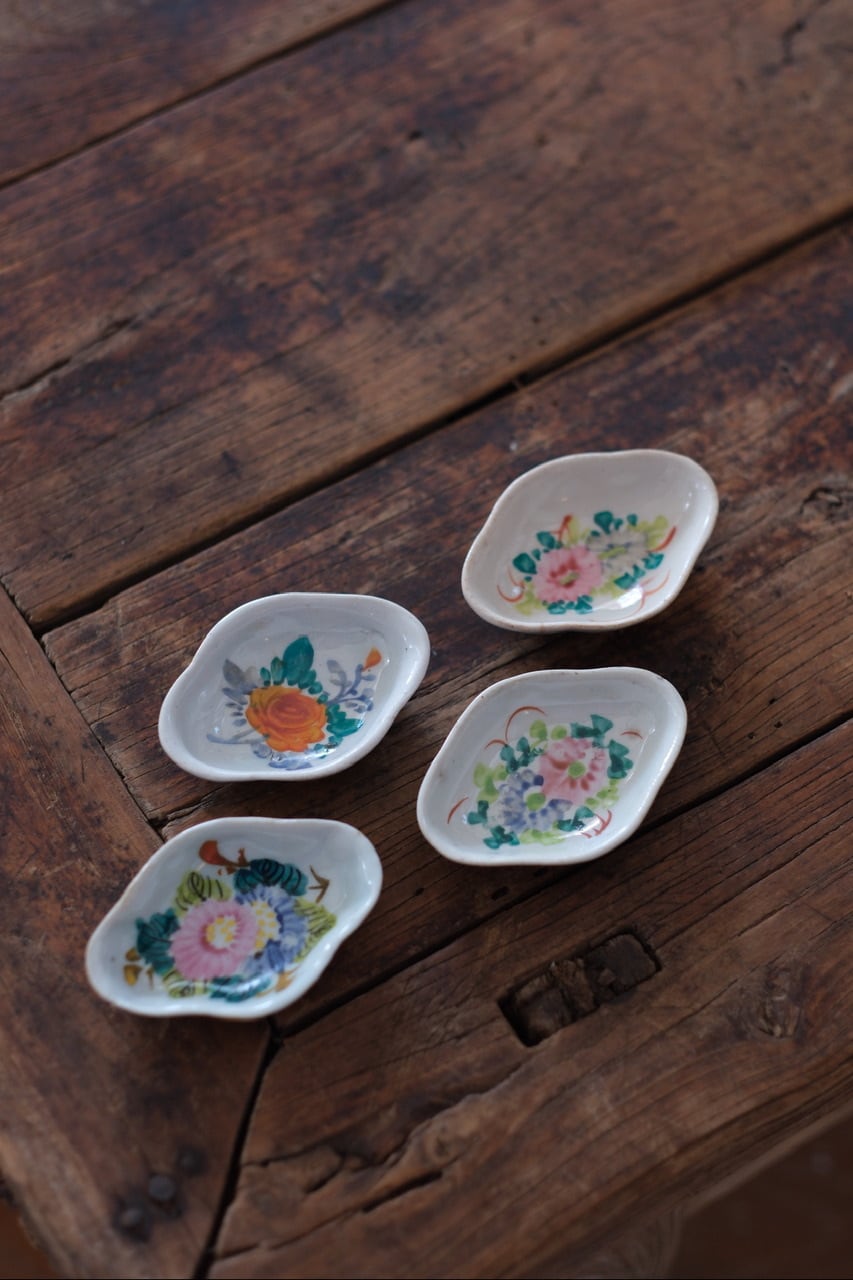 【民国】粉彩うららかな春の野花 豆皿