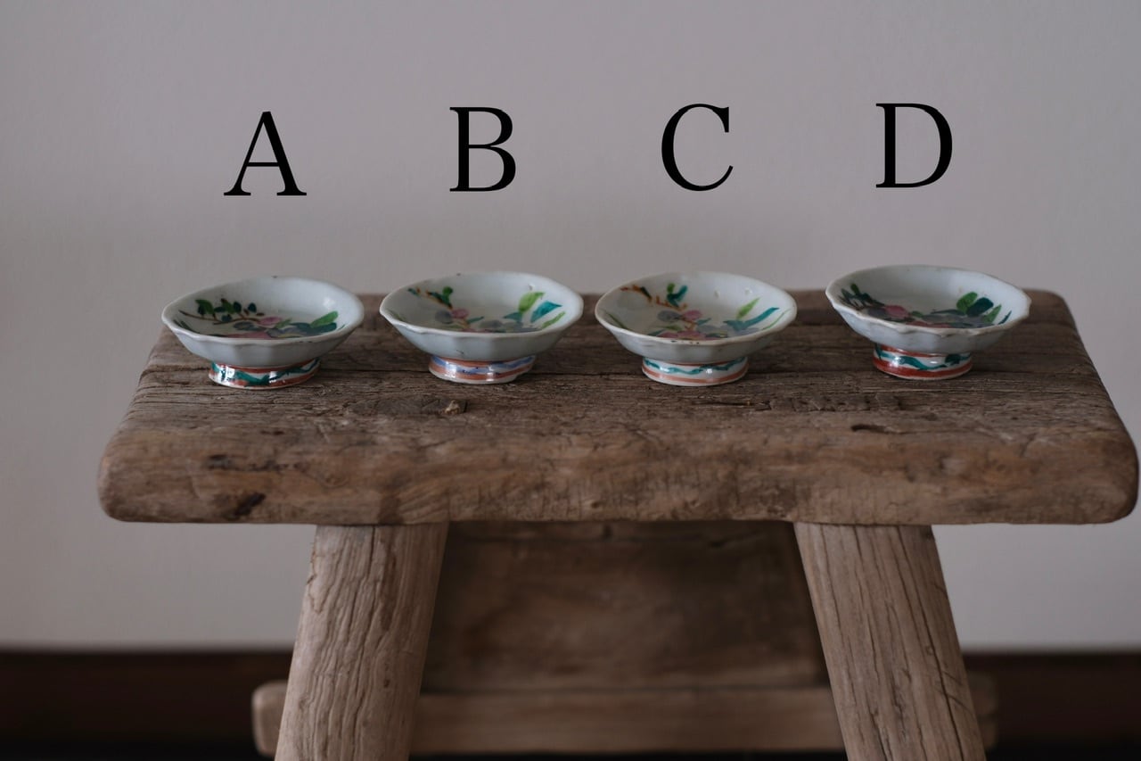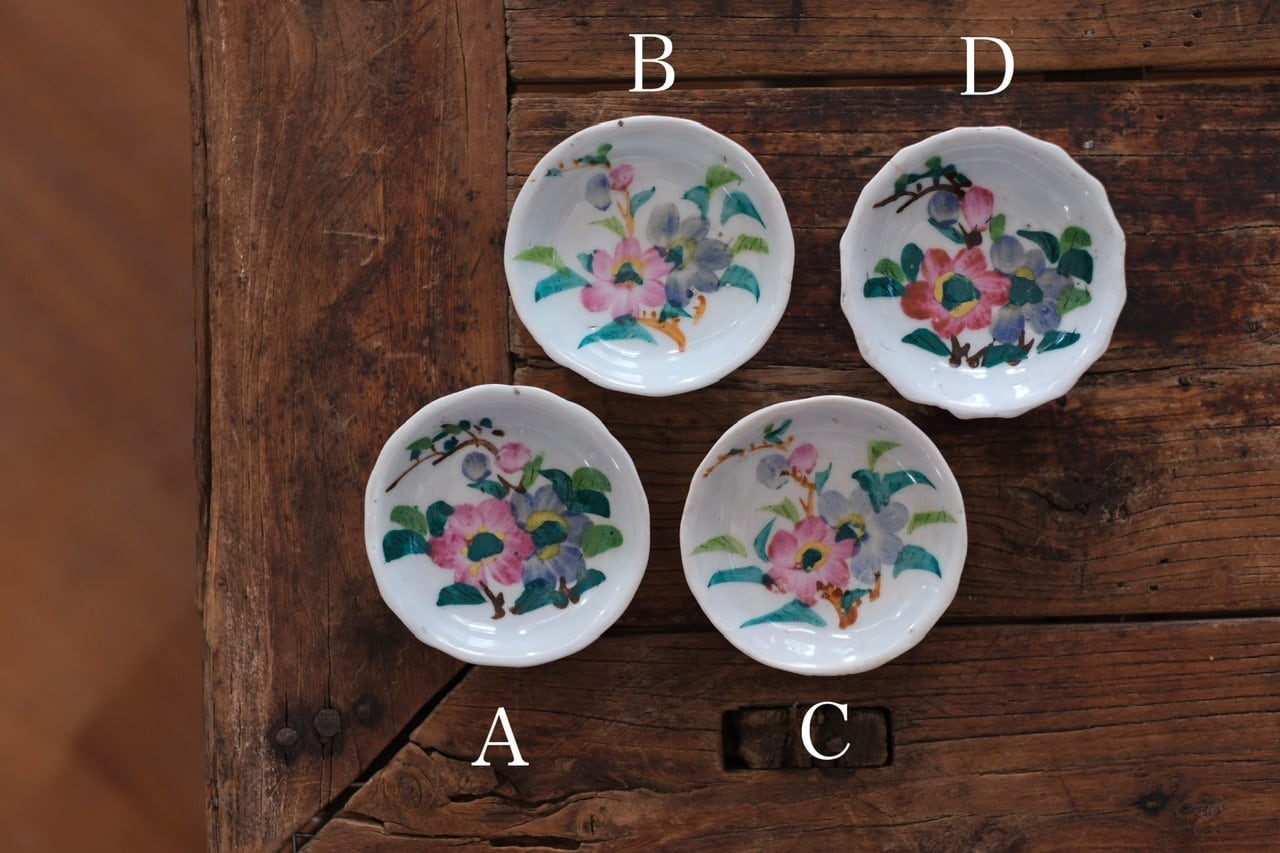 経年によるわずかな擦れ、貫入や色の沈着、小さなヒビや欠け、当時の製造工程で生じた窯傷(小さな黒点や釉薬のムラなど)が見られる場合がございます。古いものならではの味わい、景色としてお楽しみいただけますと幸いです。