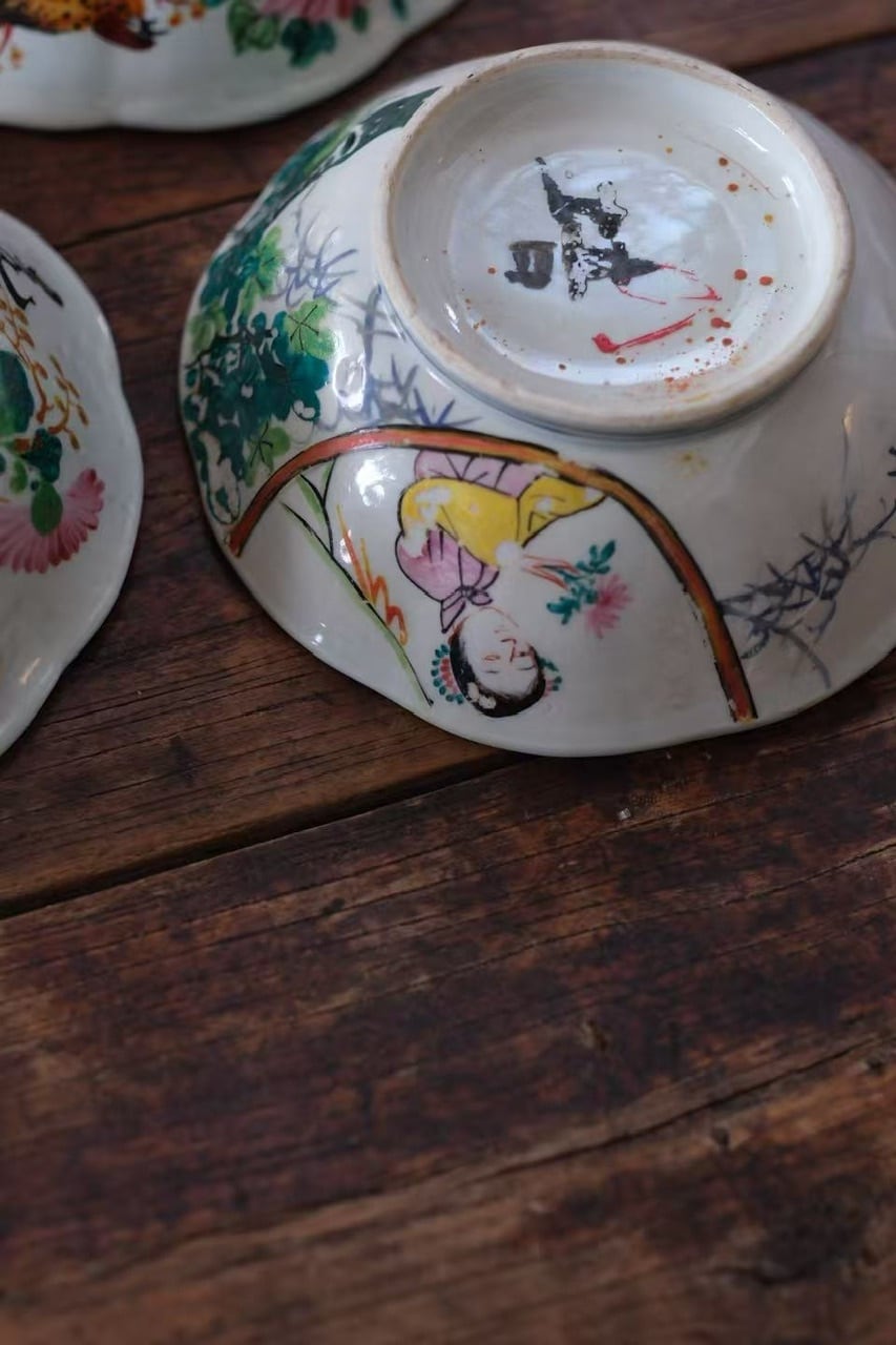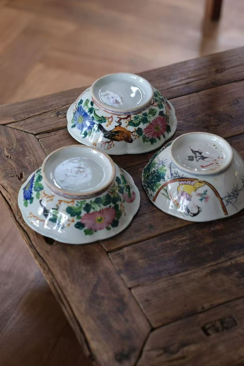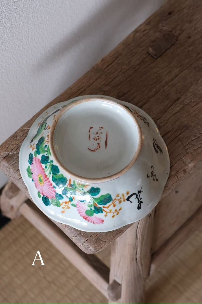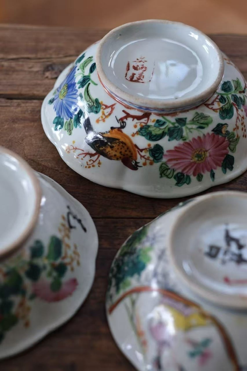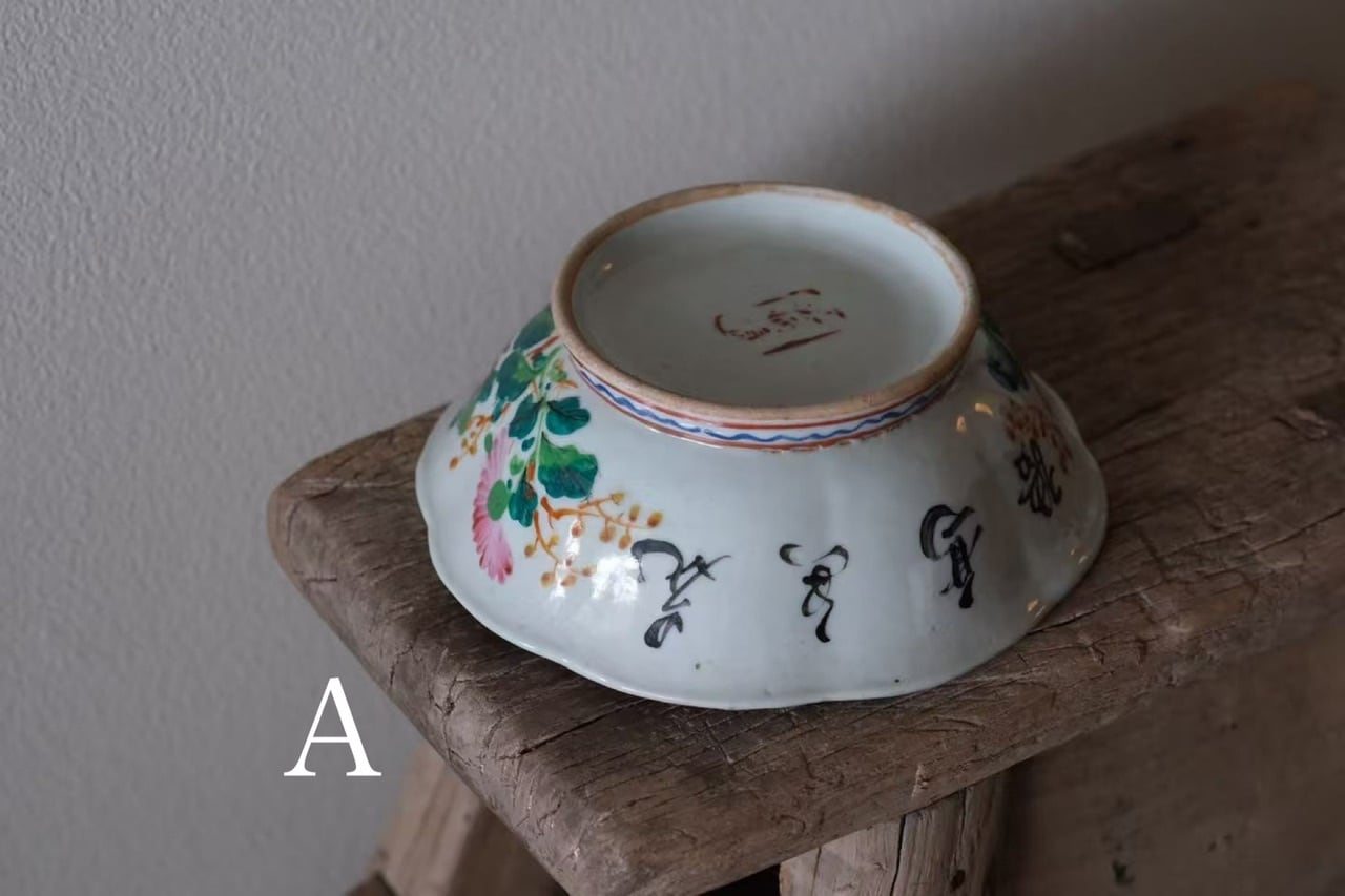 粉彩特有のふんわりとした柔らかな発色と、絵画のように繊細な濃淡の表現が、器全体にノスタルジックな華やかさを与えています。