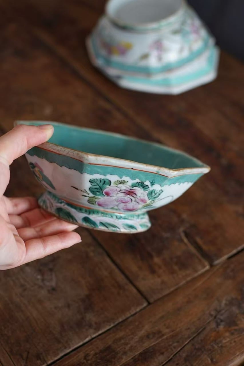 清代末期 粉彩 八角深皿