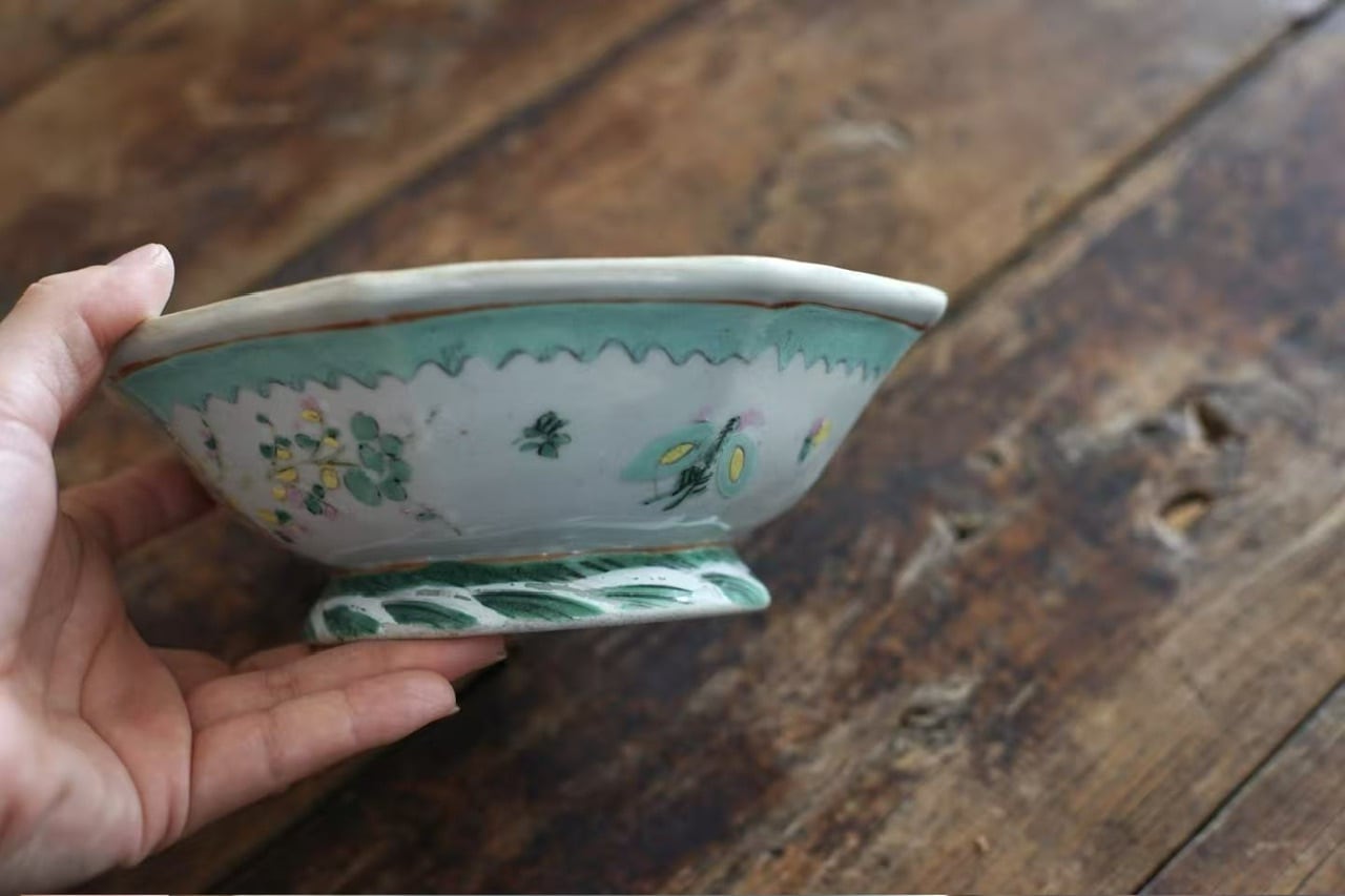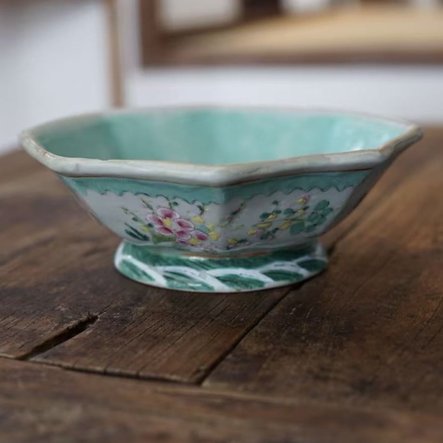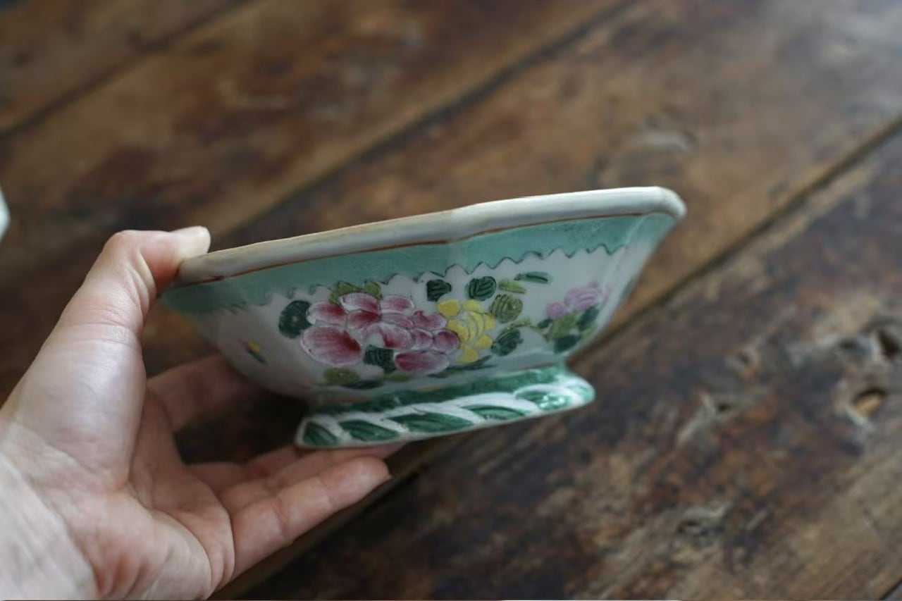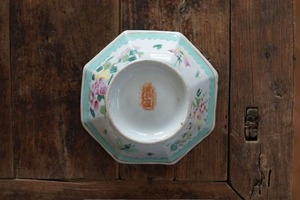 清代末期 粉彩 八角深皿C