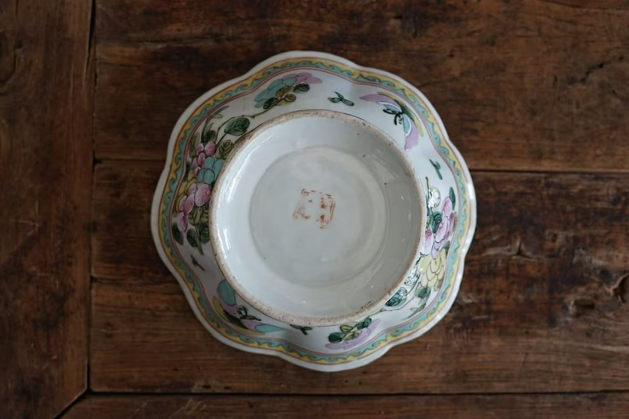 こちらは今回仕入れた粉彩のお皿の中で、最も華やかで、細かい施しがなされた1点。