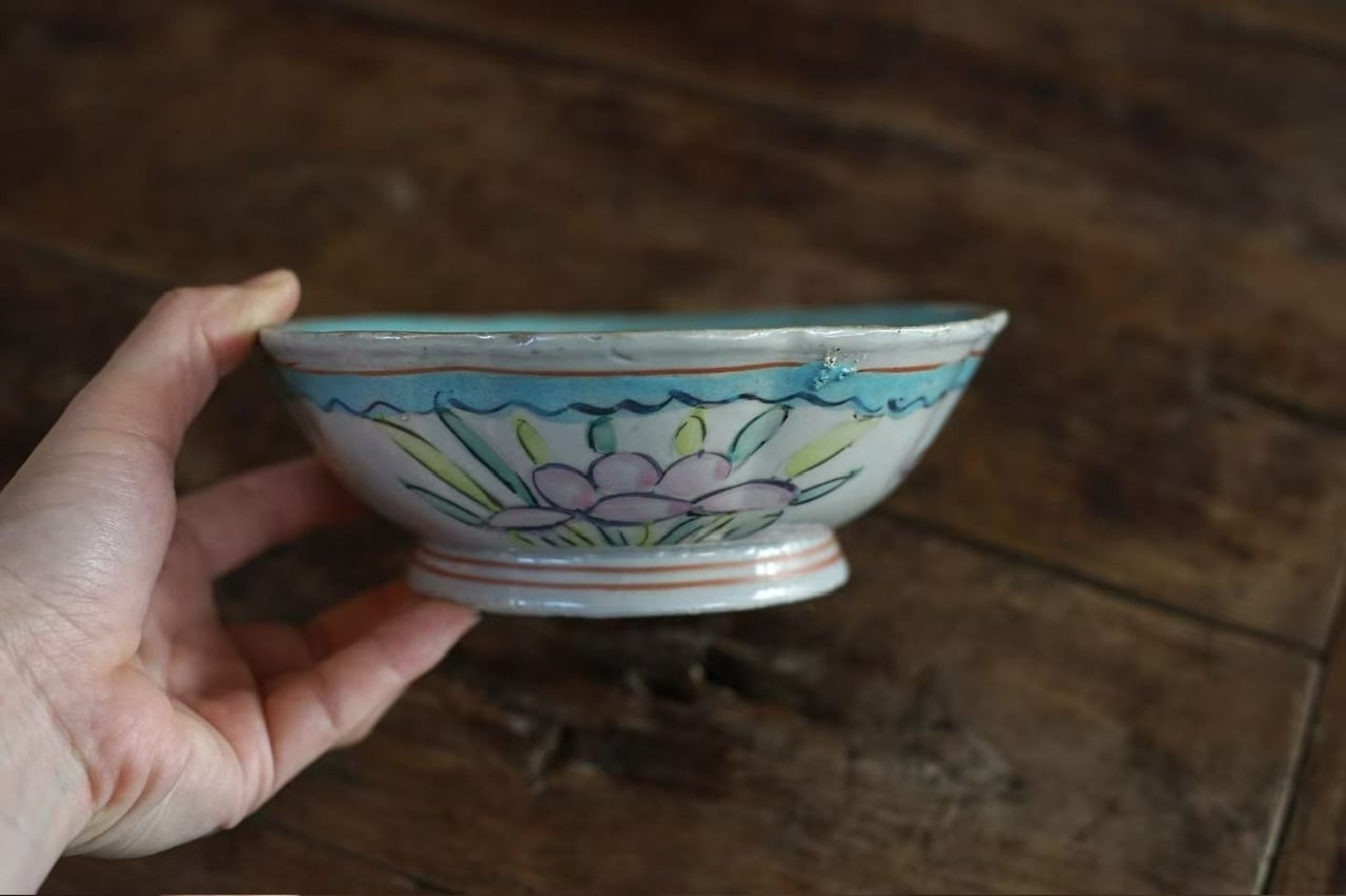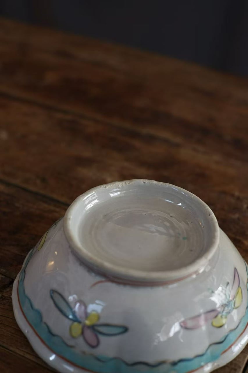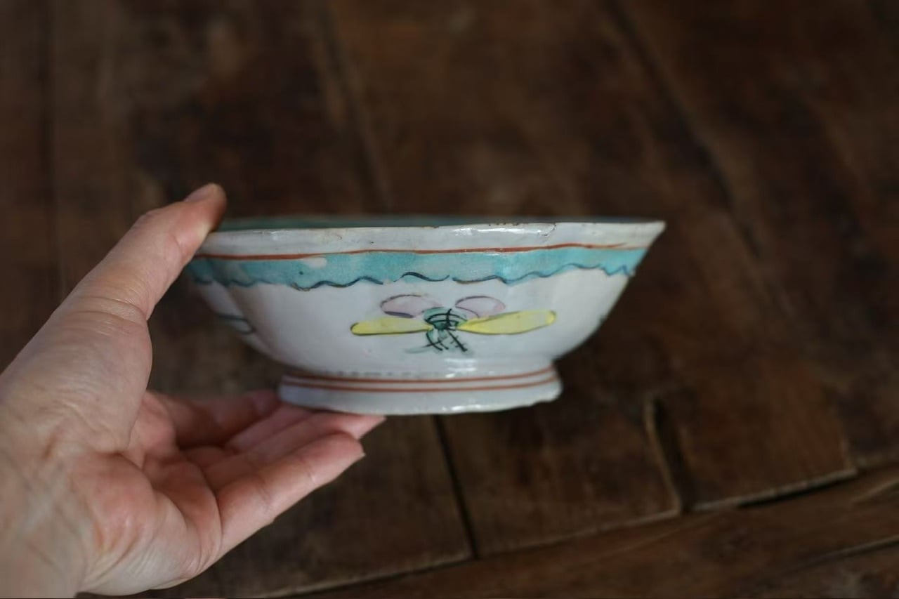 こちらは清代末期に作られた年代物です。経年によるわずかな擦れ、貫入や色の沈着、小さなヒビや欠け、当時の製造工程で生じた窯傷(小さな黒点や釉薬のムラなど)が見られる場合がございます。古いものならではの味わい、景色としてお楽しみいただけますと幸いです。